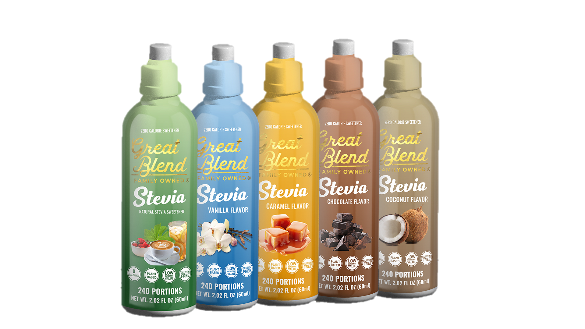 Great Blend’s Stevia is an all-natural, sustainably sourced sweetener, available in two formats — packets and liquid drops —offering a calorie-free and affordable alternative to sugar!